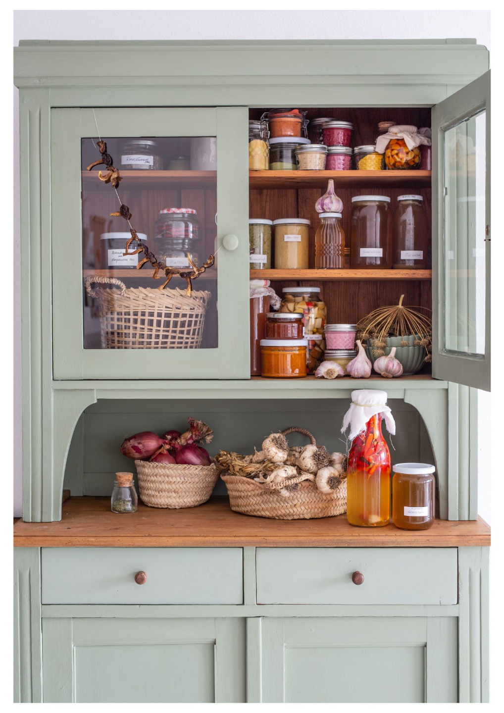 Eine üppig gefüllte Vorratskammer mit saisonalen Leckereien aus Obst, Gemüse und Wildpflanzen u.a.